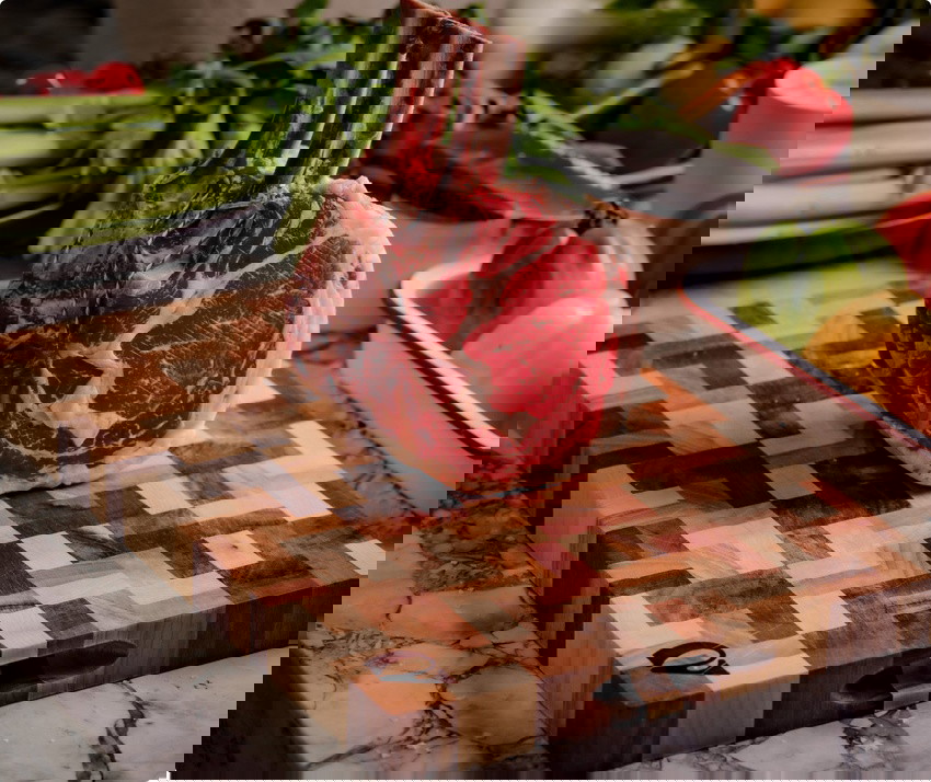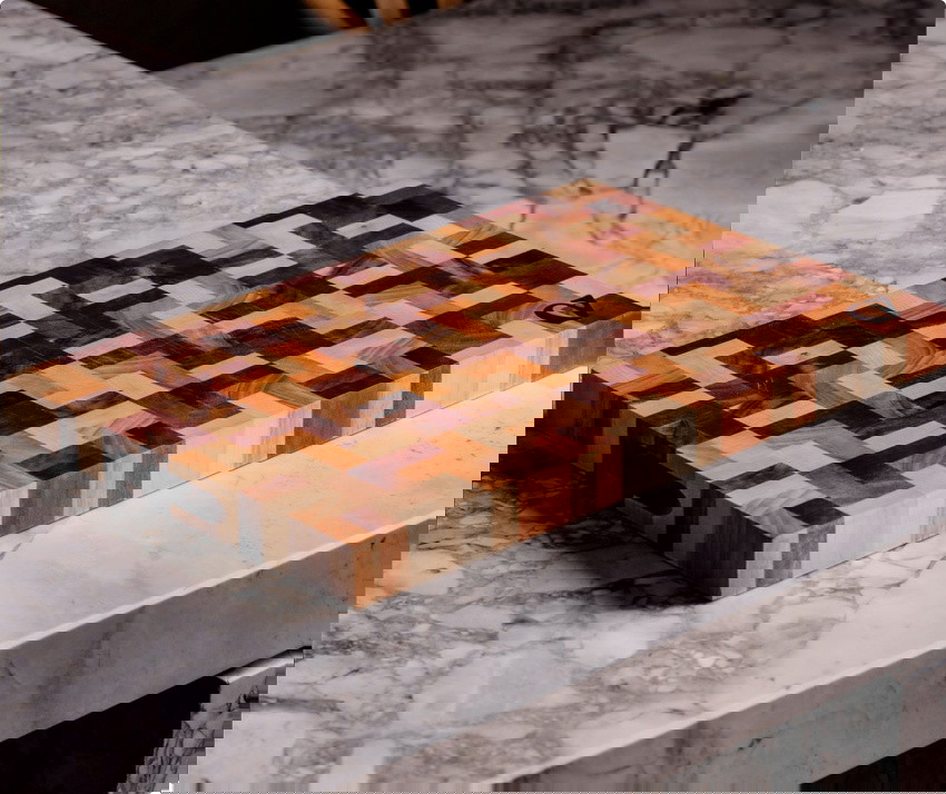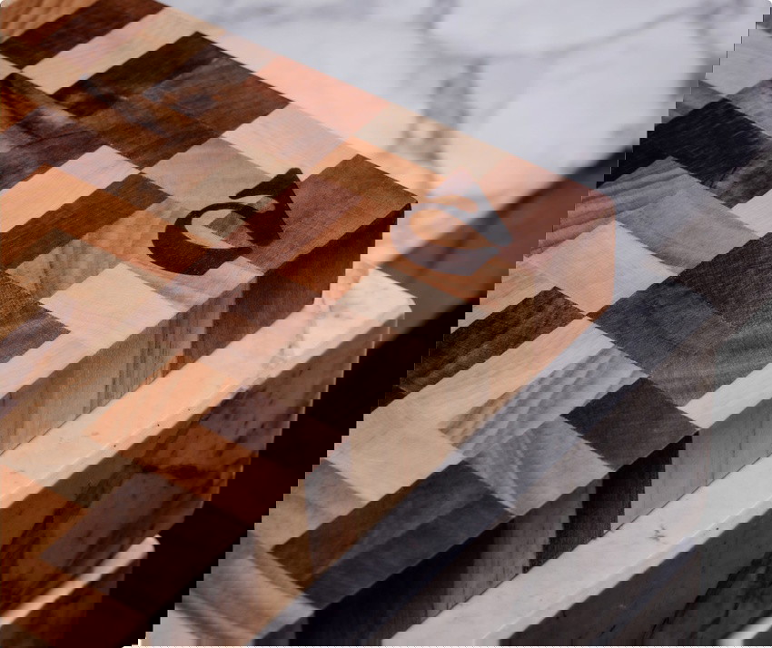 This end grain chopping board is crafted from premium Acacia, Sapele, Maple, and Oak, offering unmatched durability and beauty. Its heavy weight and smooth surface make it the perfect kitchen essential, designed to last and elevate your home cooking.
